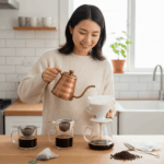 また、抽出器具によっても味わいが変わります。ペーパードリップですっきりと淹れるのも良いですし、フレンチプレスを使ってコーヒー豆の油分(コーヒーオイル)ごと抽出すれば、より力強いコクとなめらかな口当たりを楽しめます。