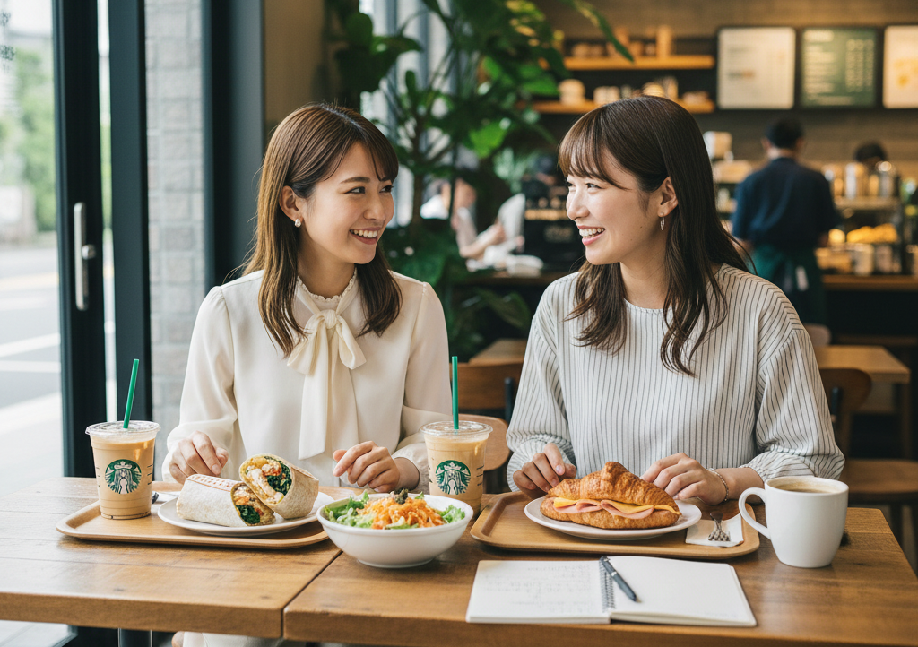 スタバのフードは大きく分けて「食事系」「ヘルシー系」「ペストリー(パン)系」の3つです。予算はドリンクと合わせて1,000円前後が目安。レストランランチと同じくらいの価格で、快適な空間も手に入ります。